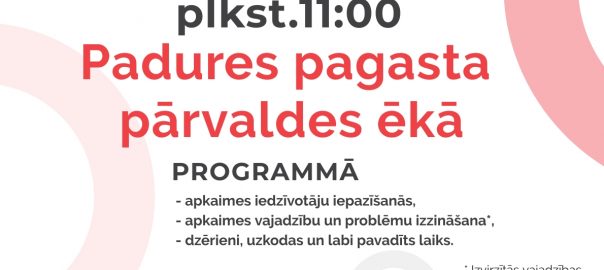 Informējam,ka savu darbību ir atsākuši Padures pagastā organizētie pulciņi: Pirmdienās no plkst. 18;00 – 20:00,sieviešu vokālais ansamblis, nodarbības notiek Deksnē, pasākumu zālē. Otrdienās no plkst. 19:00 – 20:00, amatierteātra pulciņš,nodarbības notiek, PaduresRead More…